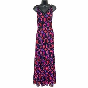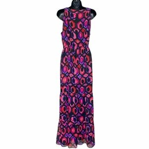 NY Collection Sleeveless Fit & Flare Multicolored Geometric Print Maxi Dress Women's Size XL