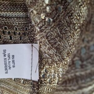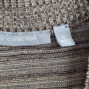 Ny Collection Tan Striped Open Front Short Sleeve Sweater