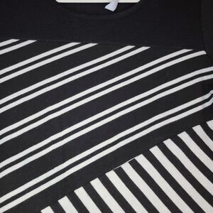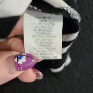 This NY Collection blouse is a size S, multicolor striped tunic featuring a pullover style and roll tab sleeves. Made from a comfortable polyester blend with 20% rayon, it offers a touch of stretch for everyday wear.