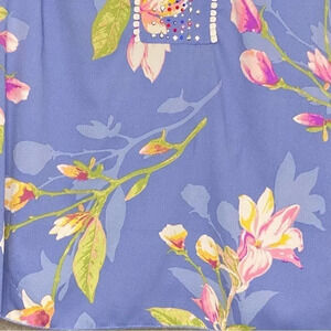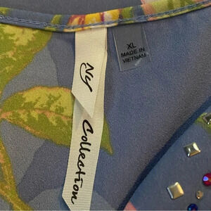 Ny Collection XL Top Shirt Blue Pink Floral Embellished V Neck Elbow Sleeve