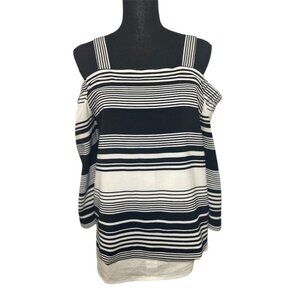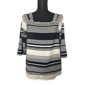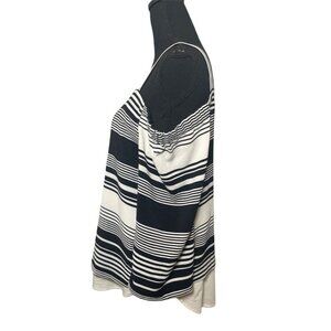 Ny Collection tunic top striped black and white strappy nautical preppy layered