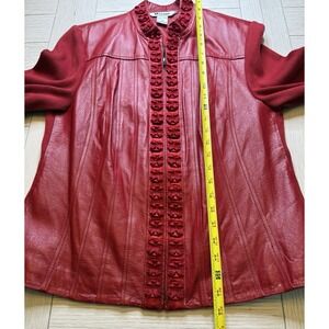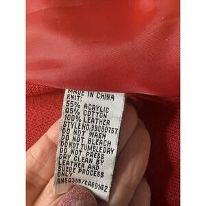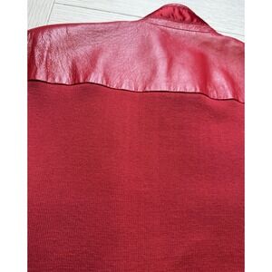 Nyagard Womens Vintage Jacket Petite Sz L Red Leather W/ Knit Sleeves & Back Zip Up Jacket w/ embellished trim. Smoke free
