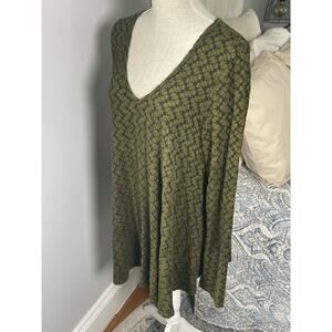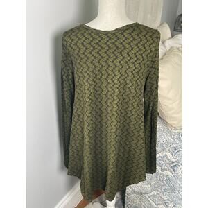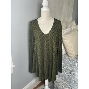 Nyah Green Leaf Print V-Neck Tunic Top M Boho Flowy Long Sleeve Cottagecore