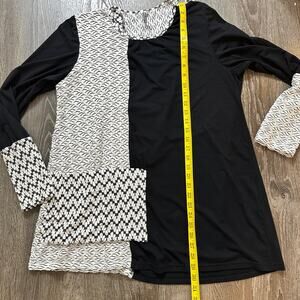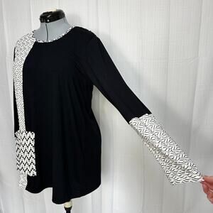 Nyah Mix Texture Color Block Tunic Top Front Pocket Long Sleeve Artsy Sz: L