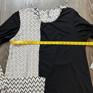 Styles: Lagenlook, Artsy, Casual, Abstract Patterns, Mixed Textures, Creative, Self-Expression, Visual Rhythm, Black & White, Versatile, Comfortable, Relaxed