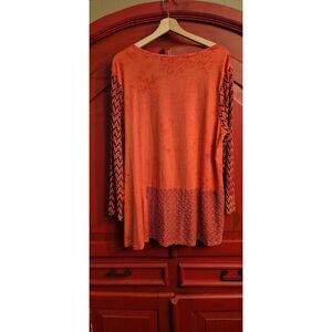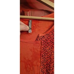 Nyah XL Tie Dye Melon Red Tunic Top Artsy Shirt Stretchy Comfortable Boho EUC