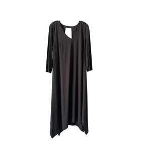 Nyah Long Dress by la blend. Material: 60 % Rayon, 36% Polyester, and 4 % Spandex. Color: Beluga Style Style : YM00145M. This is well made, with detail cut design . 3/4 length sleeves. This is a dark shade of brownish/ gray. Has two long lengths at the bottom. Length: 43 In. Longer Length: 48 In.  Hand wash only separately nonchlorine bleach lay flat to dry low iron.