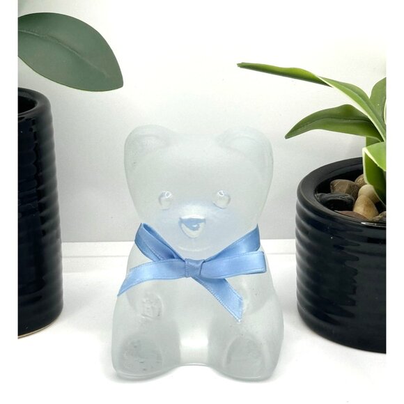 This Nybro Sweden Crystal Teddy Bear Frosted Paper Weight is a beautifully crafted art glass figurine. Clear and standing at approximately 3.25” tall, this piece adds a touch of elegance to any space.