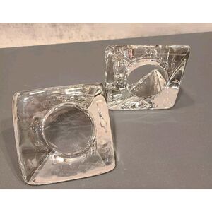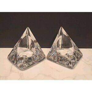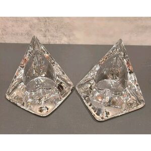 Vintage Nybro Crystal Clear Pyramid Geometric Candle Holders by Tord Kjellstrom Sweden | 1970s | Retro | 4" x 3.5" | Mid-Century Modern | Home Décor Set of 2 | Excellent Used Vintage Condition |*Flaw, light surface scratches on the base of the candle holders from previous use | Please refer to the photos for the condition | Weight before packaging 3 pounds.