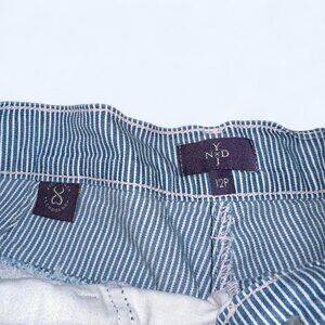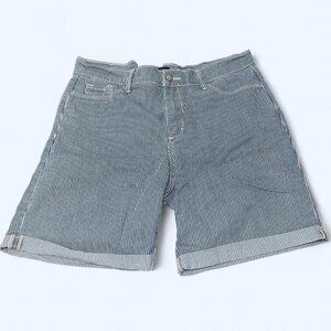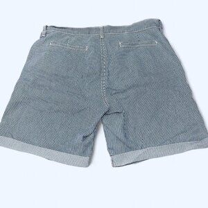 Classic blue & white pinstripe Bermuda shorts with cuffed hems. Lightweight, comfy, and proudly made in the USA. Perfect for casual summer wear!