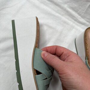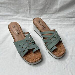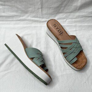New in box Nydj Jade Tumbled Leather Reesie Wedge Sandals Jade Green 5.5