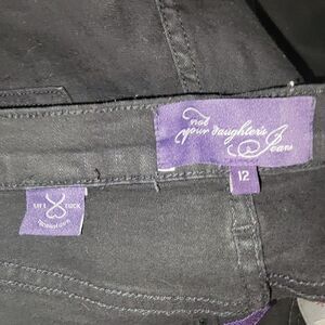 Excellent like new condition. Women's Nydj Lift Tuck Black Boot Cut rhinestone side Jeans Size 12.