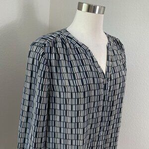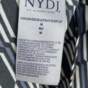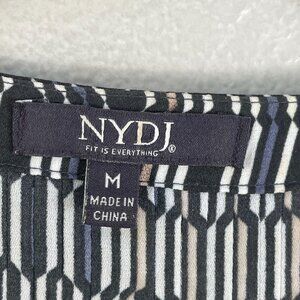 Nydj Womens Medium Geometric Blouse Tunic Top 3/4 Sleeve Shirt Pleated Back