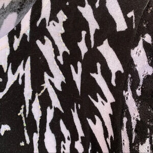 Black and white sweater with white iridescent beadwork around the sweater
