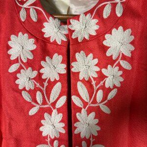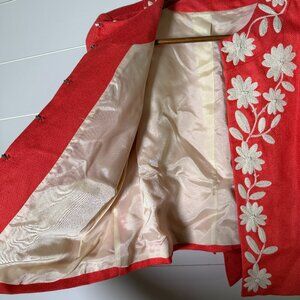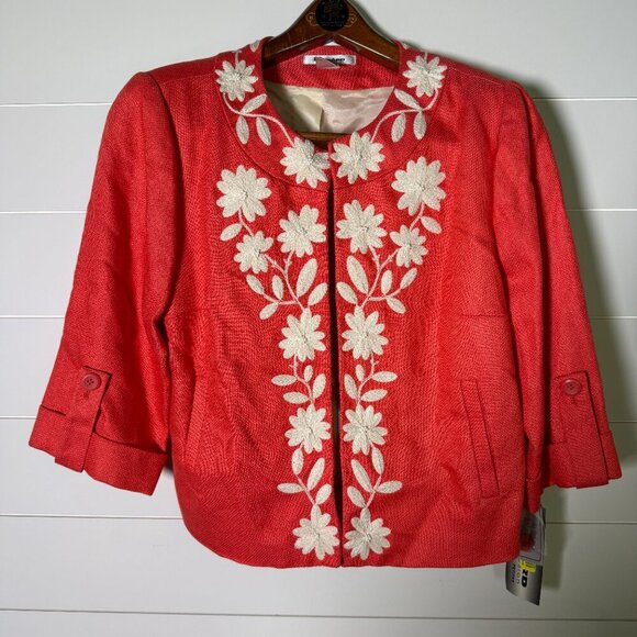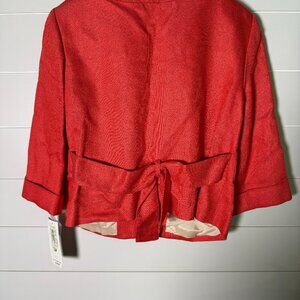 Nygard Blazer Jacket Dark Coral & Cream 3/4 Sleeve Hook Closure Size 14 P-NWT