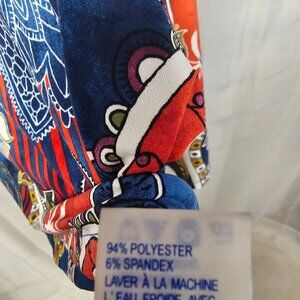Nygard Blue Red Midi Blouse Boho Sheer Topper Retro Floral XL