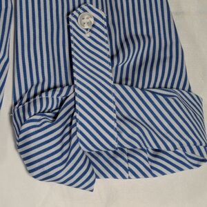 Stylish blue striped button-up shirt with embroidered floral details. Ideal for casual outings or the office.