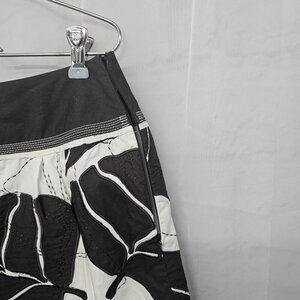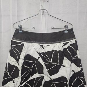 Nygard Brown White Stitched Leaf Print Tropical Boho A-line Skirt 8