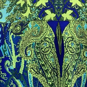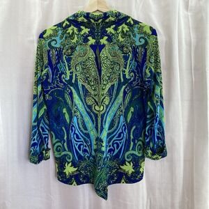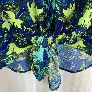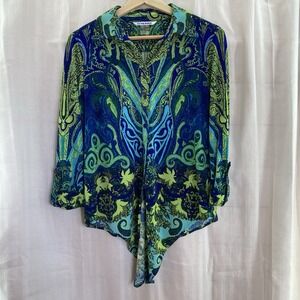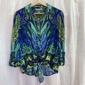 Nygard Button Front Roll Tap Sleeve Tie Front Blue Green & Paisley Petite Small