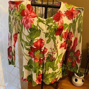 Nygard Collection Cardigan open Knit Sleeve Sequins Embroidery