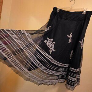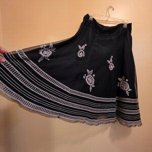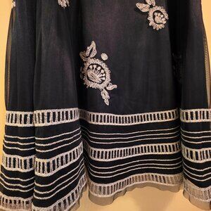 Nygard Collection Flared Navy Blue w/ White Embroidery Flowers w/ Sheer Overlay