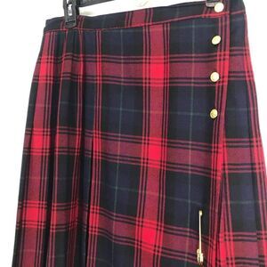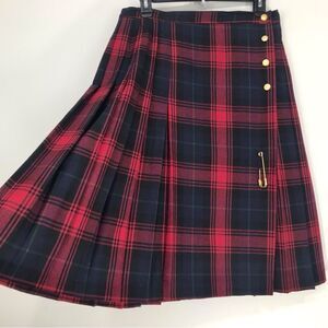 Nygard Collection Red Navy Blue Plaid Pleated Vintage Kilt Style Wool Wrap Skirt