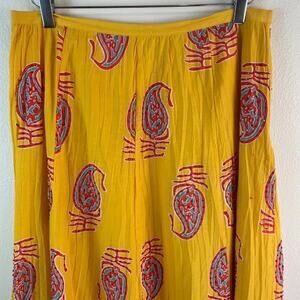 Nygard Collection Colorful Paisley Print Skirt With Sequin & Bead Embellishments. Size 10. Maxi skirt. Vibrant fabric in pink, yellow, orange, turquoise & blue. Bead and sequin embellishments throughout. Left side zipper. Lined. Great boho style for festival or concert. Excellent preowned condition.