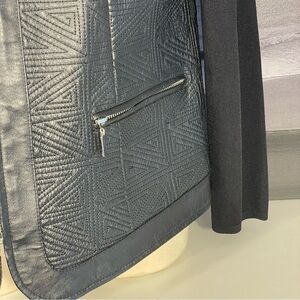 Nygard Collection Sz OX Black Geometric Textured Leather Knit Sleeve Back Jacket