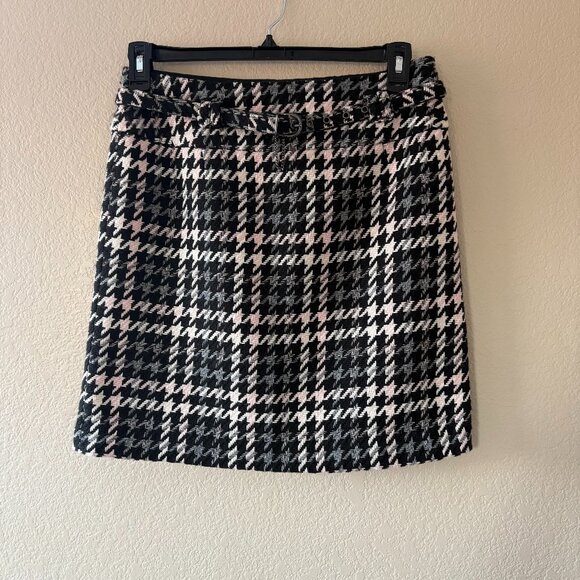 Cute skirt in black/gray/white/pink houndstooth pattern with side zipper and belt in great condition. Preppy Y2K