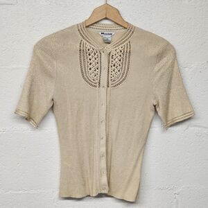 Nygard Collection Y2K Sweater Blouse Size Small Ribbed Knit Gold Metallic
