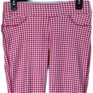 Nygard Luxe Slims Capri Size M 10-12 Pink White Gingham Check Stretch Fun Pants