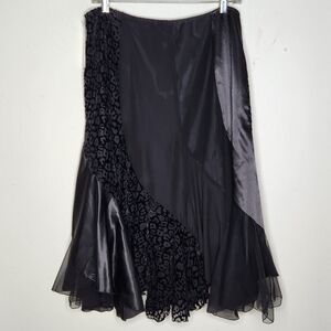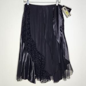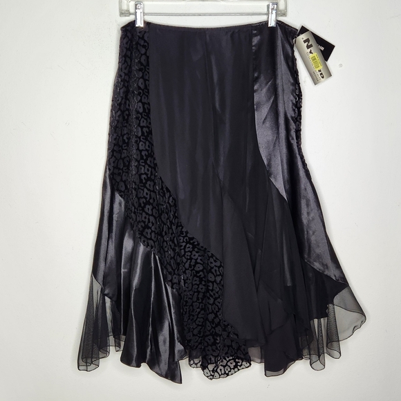 Nygard NWT Petite 12P Skirt Asymmetrical Fairy Whimsigoth Boho Animal Print Blk