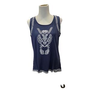 Nygard NWT embroidered top navy blue cotton modal size M