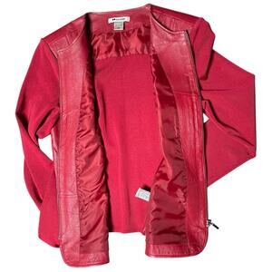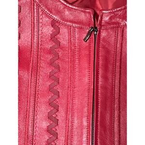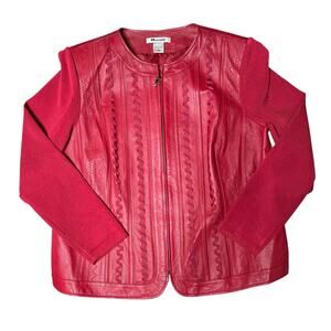Nygard Red Embellished Leather Mixed Media Zipper Front Jacket XL