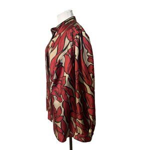 Nygard Silk Blouse Top Womens Size 20 Red Tan Black Long Sleeve