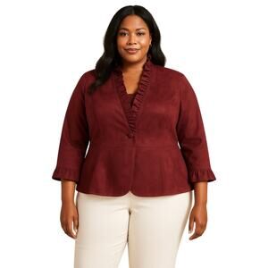 Nygard Ultra Suede Ruffle Jacket 20W – Wine, Princess Seams, Chic Fit