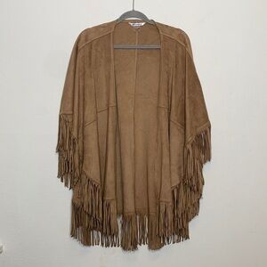 Nygard Women's Camel Color Faux Suede Fringed Shawl Western Boho One Size