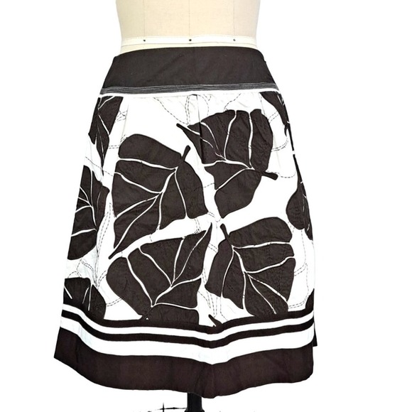 Nygard collection brown white leaf pattern 100% cotton skirt size petite 10