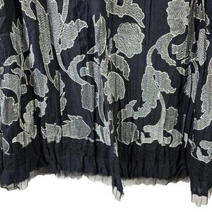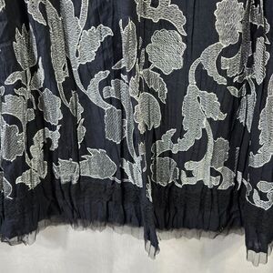 - Color: Black base with white and gray floral embroidery