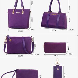 Nylon 6 PCS Women Shoulder Bag Top-Handle Handbag Tote Purse Wallet Key Case Set