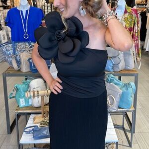 Nylon Apparel - 3 D Floral One Shoulder Top, Black, Sizes S - NWT