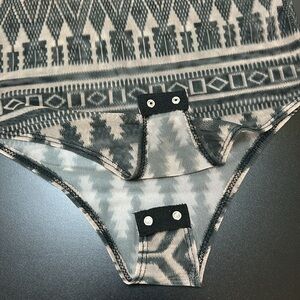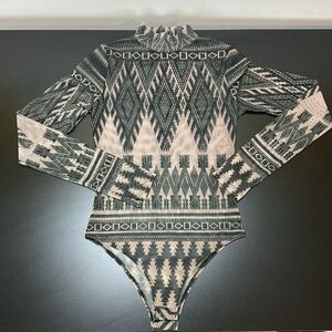Nylon Apparel Southwest Aztec Print Mesh Sheer Bodysuit Mock Neck Medium