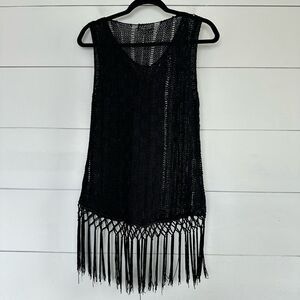 Nylon Apparel Women’s Medium/Large Black Boho Fringe Tank New NWT