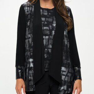 Shine bright in this modern tank top designed with contrast and texture in mind. The front showcases a radiant metallic foil finish, while the black back panel ensures all-day comfort and effortless pairing. Crafted from a flexible fabric blend, it hugs comfortably without clinging. Ideal for dressing up jeans or layering under blazers, this tank is a statement piece that remains wearable. Proudly made in the USA.
