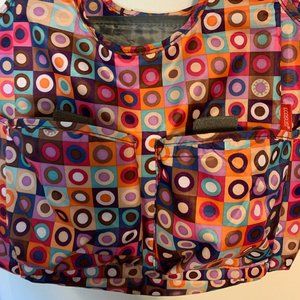 New nylon hand bag with a lot of pockets inside and outside . Zipper closer on the top. Size of the bag 11long x16wide x5 inches. The length with handles 22 inches.