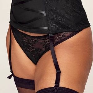 Lace Contour Plus Padded bra cups+straps, Lace sides, GARTERS, cross satin lace up non-functional,