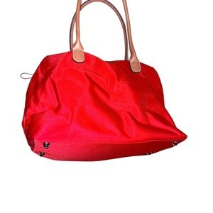 Beautiful nylon shoulder bag in a beautiful red perfectly clean on the inside perfectly clean on the outside excellent condition