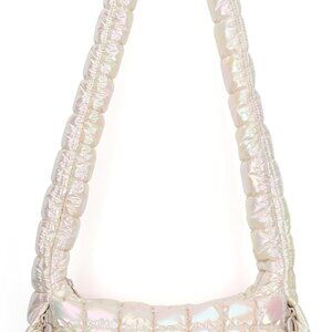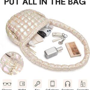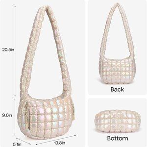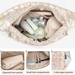 Features: Quilted nylon exterior that’s soft, breathable, and super durable. Spacious enough to carry your essentials like an iPad, books, or makeup, thanks to the roomy 13.8 x 9.8 x 5.1 inch size. Features multiple pockets—zippered and slip pockets inside, plus side zip compartments for quick access to keys or your phone. The padded shoulder strap feels comfortable all day long, even without adjustment. Perfect for work, shopping, or casual outings, and it adds a pop of sparkle to any outfit.