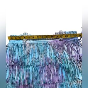 This stunning blue mini skirt features elegant ruffles, making it perfect for a night out or cocktail event. Its vibrant hue and playful design add a touch of sophistication and fun to any resort wear collection. The skirt's mini length and stylish ruffles create a chic and modern look.