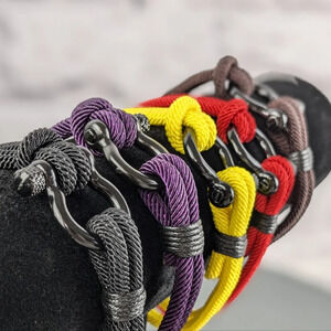Nylon cord shackle bracelets, about 7", assorted colors, unisex